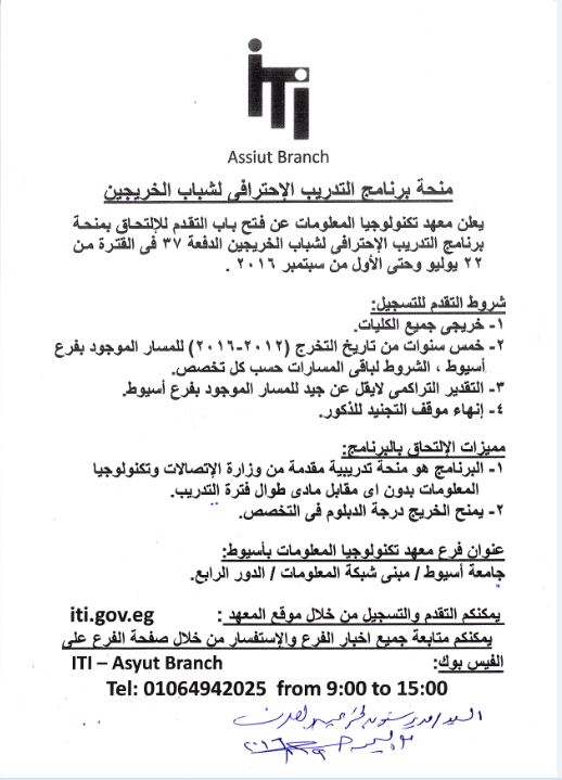 منحة تدريب البرنامج الأحترافى لشباب الخريجين 10 أغسطس 2016 منحة تدريب البرنامج الأحترافى لشباب الخريجين