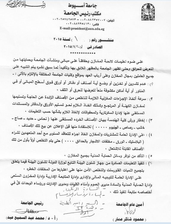 منشور رقم 1 الخاص بلائحة المخازن ( الحفاظ على منشآت الجامعة وحمايتها) 8 فبراير 2015 منشور رقم 1 الخاص بلائحة المخازن ( الحفاظ على منشآت الجامعة وحمايتها)