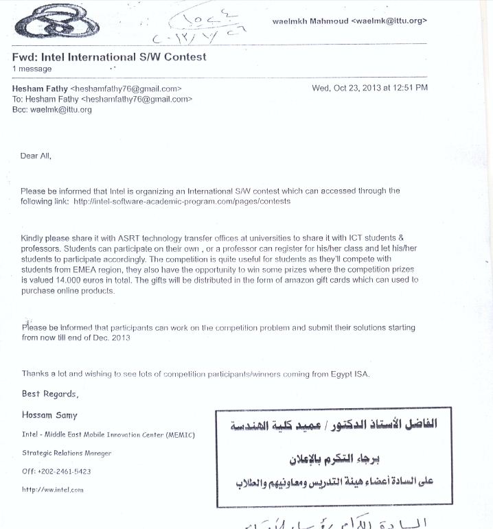 يرجى التكرم بمشاركة هذا الإعلان مع مكتب  نقل و تسويق التكنولوجيا و  ASRTلمشاركتها مع طلاب ICT