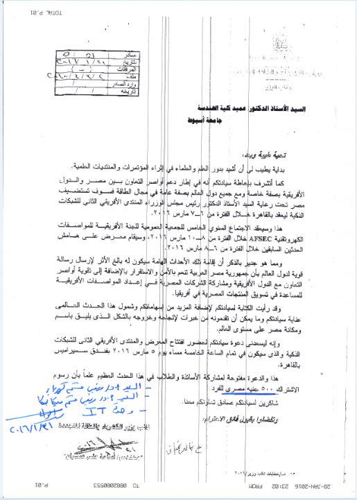 مصر تستضيف المنتدى الافريقى الثانى للشبكات الذكية من 6-7 مارس 2016 1 فبراير 2016 مصر تستضيف المنتدى الافريقى الثانى للشبكات الذكية من 6-7 مارس 2016