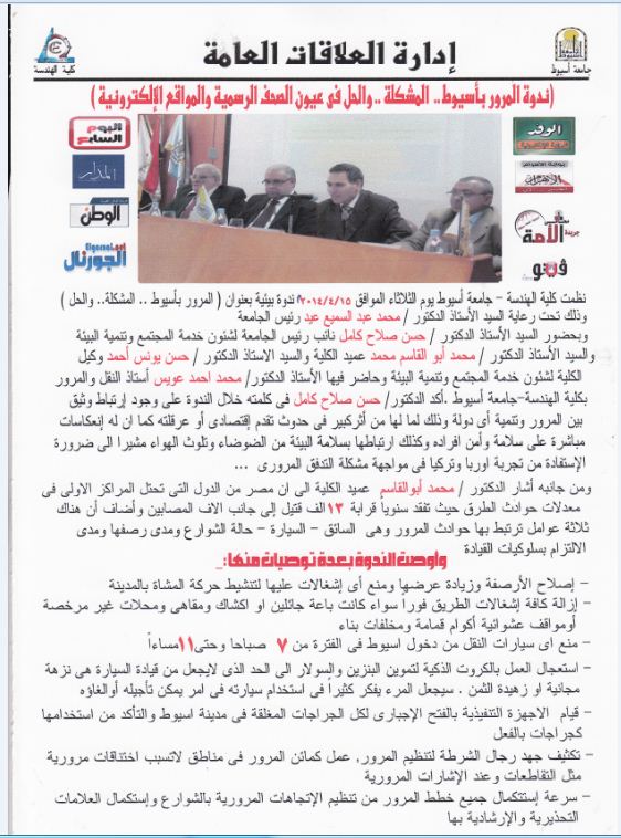 ندوة المرور بأسيوط ...المشكلة..والحل فى عيون الصحف الرسمية والمواقع الإلكترونية