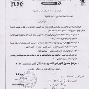 فى اطار تنفيذ البرامج التدربية لمركز تنمية قدرات السادة اعضاء هيئة التدريس والقيادات خلال سبتمبر 2014 م ونظرا للضوابط المحددة…