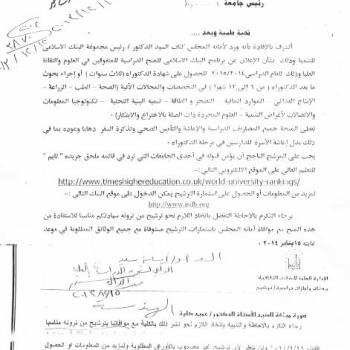 برنامج البنك الإسلامى للمنح الدراسية للمتفوقين فى العلوم والثقافة وذلك للعام الدراسى 2014/2015 للحصول على شهادة الدكتوراة (ثلاث سنوات) او…