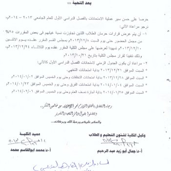 السبت الموافق 21/12/2013 بداية الامتحانات الشفهى