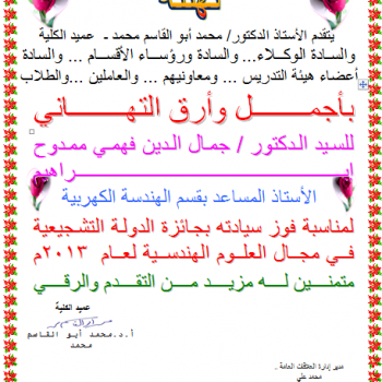 يتقدم الأستاذ الدكتور/ محمد أبو القاسم محمد ـ عميد الكلية
