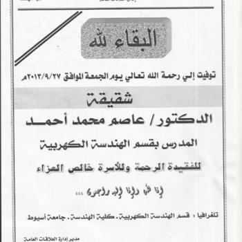 واجب عزاء.. توفي الى رحمة الله زوج شقيقة الأستاذ…