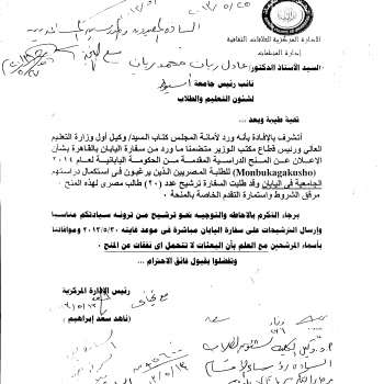 ورد من سفارة اليابان بالقاهرة إعلان عن المنح الدراسية المقدمة من…