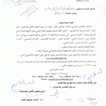 جائزة الإبداع العربى فى دورتها السابعة لعام 2013