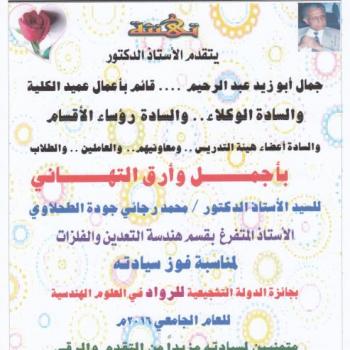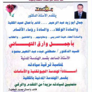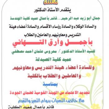 تتقدم أسرة كلية الهندسة بأجمل وأرق التهاني القلبية للأستاذ الدكتور محمد رجائى…