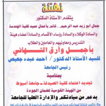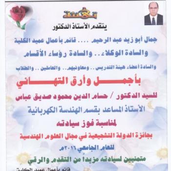 تتقدم أسرة كلية الهندسة بأجمل وأرق التهاني القلبية للسيد الدكتور حسام الدين محمود صديق عباس،…