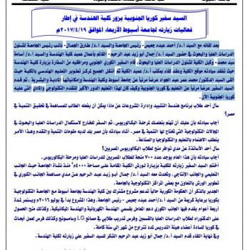 السيد سفير كوريا يزور كلية الهندسة فى إطار فعاليات زيارته لجامعة أسيوط الاربعاء الموافق…