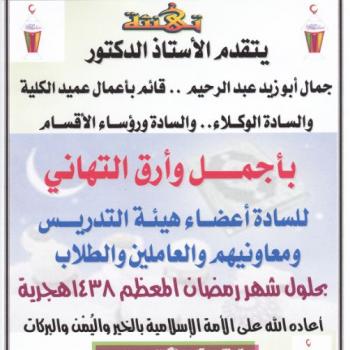 يتقدم السيد الأستاذ الدكتور جمال أبوزيد عبدالرحيم القائم بأعمال عميد الكلية والسادة الوكلاء والسادة رؤساء الأقسام بأجمل وأرق…