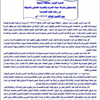 تقرير عن زيارة السيد الوزير المهندس ياسر الدسوقي محافظ أسيوط يوم الاثنين الموافق 13-3-2017 لكلية الهندسة لتفقد سير الإمتحانات…