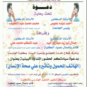 توفى إلى رحمة الله تعالى اليوم الخميس الموافق 17-11-2016 الأستاذ الدكتور/ عبدالعال محمد عبد الواحد، الأستاذ المتفرغ بقسم الهندسة المدنية ووالد المهندس إبراهيم عبد العال…
