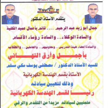 يتقدم الأستاذ الدكتور/ جمال أبوزيد القائم بأعمال عميد الكلية والسادة الوكلاء والسادة رؤساء الأقسام بأجمل و أرق التهانى للسادة أعضاء هيئة التدريس ومعاونيهم والعاملين…