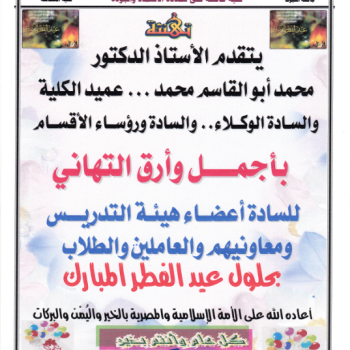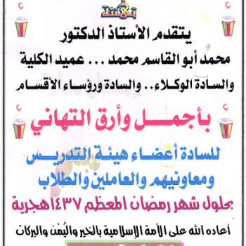 تهنئة أسرة كلية الهندسة بمناسبة حلول شهر رمضان المعظم 1437 هـ
