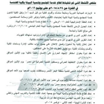 ملخص الأنشطة التى تم تنفيذها قطاع خدمة المجتمع وتنمية البيئة بكلية الهندسة فى الفترة من 24/8/2015 حتى يونيو 2016