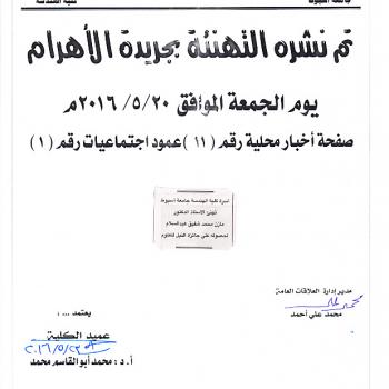 انشاء مركز تقييم ورفع جودة الخامات بجنوب الوادى (بكلية الهندسة -جامعة أسيوط) فى عيون الصحف الرسمية والمواقع الالكترونية