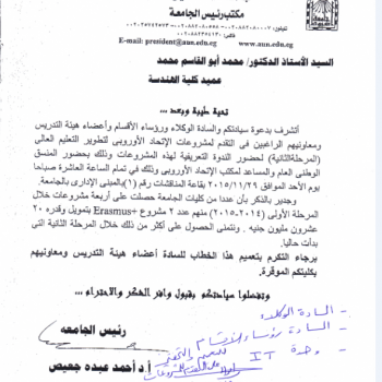 دعوة عامة لحضور الندوة التعريفية للراغبين فى التقدم لمشروعات الأتحاد الأوروبى لتطوير التعليلم العالى