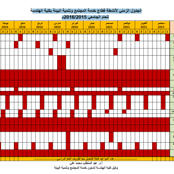 الجدول الزمنى لانشطة قطاع خدمة المجتمع وتنمية البيئة بكلية الهندسة للعام الجامعى 2015/2016م