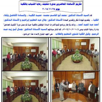 تكريم الأساتذة المحاضرين بدورة تثقيف رعاية الشباب بكلية الهندسة