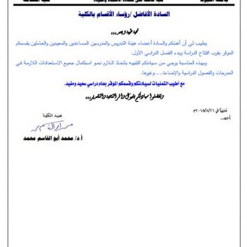 السادة الأفاضل /رؤساء الأقسام بالكلية