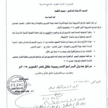 دورات تدريبية للسادة أعضاء هيئة التدريس خلال شهر أكتوبر 2015