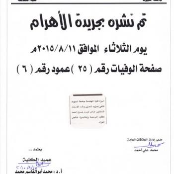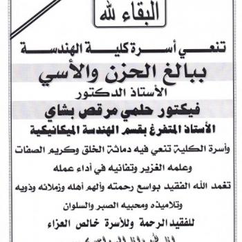 البقاء لله - وفاة الأستاذ الدكتور/فيكتور حلمى مرقص بشاى