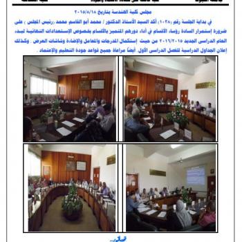 في بداية الجلسة رقم (١٠٣٨) أكد السيد الأستاذ الدكتور / محمد أبو القاسم محمد (رئيس المجلس) على ضرورة إستمرار السادة رؤساء الأقسام في أداء…