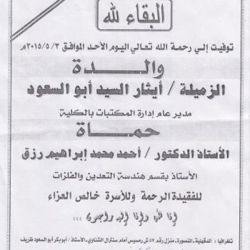 توفيت إلى رحمة الله يوم الأحد الموافق 3/5/2015م