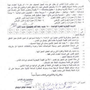 يسر مجلس ادارة النادى أن يعلن عن بدء الحجز لمصيف عام 2015 م بقرية أعضاء هيئة التدريس جامعة أسيوط