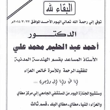 توفى الى رحمة الله وتعالى اليوم الأحد الموافق 22/3/…