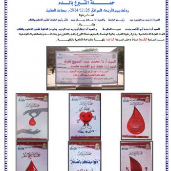 حمـــــــــلة التــبرع بالـــدم وذلك يوم الأربعاء الموافق 26/11/2014م بساحة الكلية