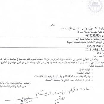 ارسلت شركة اسمنت أسيوط فاكس الى - السيد الأستاذ الدكتور /عميد الكلية