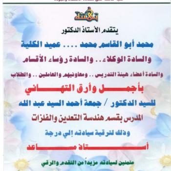 يتقدم الأستاذ الدكتور محمد ابو القاسم محمد عميد كلية الهندسة