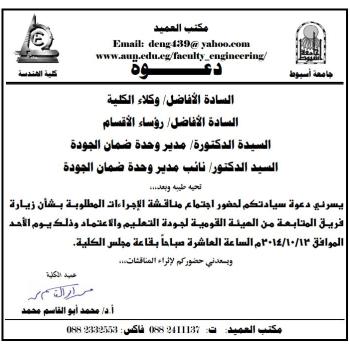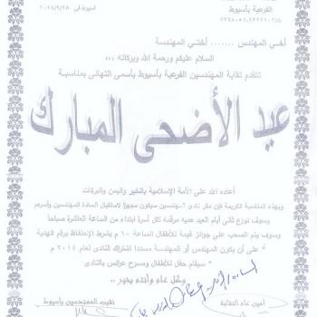 تتقدم نقابة المهندسين الفرعية بأسيوط باسمى التهانى بمناسبة