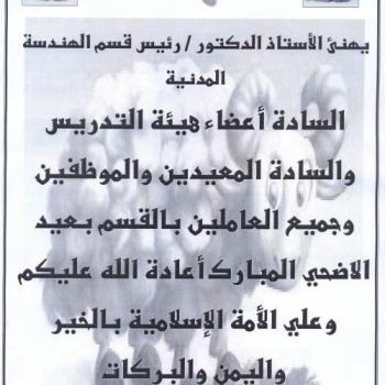 يهنئ الأستاذ الدكتور/ رئيس قسم الهندسة المدنية السادة أعضاء هيئة التدريس