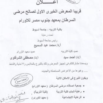 قريباً المعرض الخيرى الأول لصالح مرضى السرطان بمعهد جنوب مصر الأورام