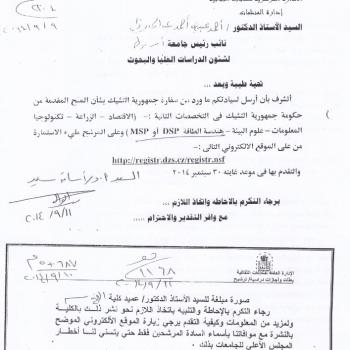 ورد من سفارة التشيك بشأن المنح المقدمة من حكومة جمهورية التشيك فى التخصصات التالية (الأقتصاد - الزراعة- تكنولوجيا المعلومات -علوم…