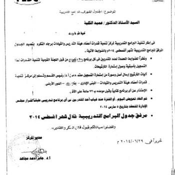 فى اطار تنفيذ البرامج التدربية لمركز تنمية قدرات السادة اعضاء هيئة التدريس والقيادات خلال أغسطس 2014…