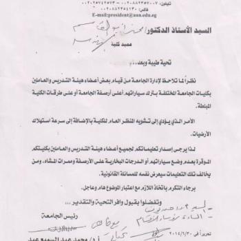 تنبية بعدم وضع السيارات او الدرجات علي الارصفة وممرات المشاه