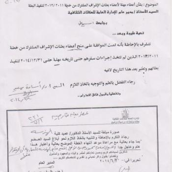 بشان اعطاء مهلة لاعضاء بعثات الاشراف المشترك من خطة 2011/2012 لتنفيذ البعثة