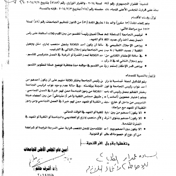 قرارات المجلس الأعلى للجامعات المتعلقة بمناصب رؤساء الأقسام والعمداء