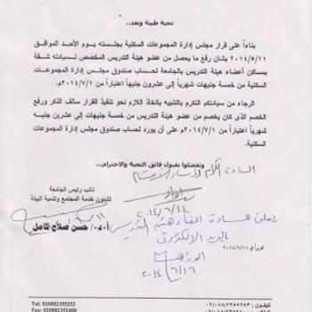 بناءاً على قرار مجلس ادارة المجموعات السكنية بجلسته يوم الأحد الموافق 11/5/2014 بشأن رفع التحصيل من السادة أعضاء هيئة التدريس المخصص لهم…