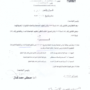 بيان مبدئي بأسماء السادة الأساتذة المتقدمين للترشيح لعضوية المجمع الانتخابي لانتخاب رئيس الجامعة فى الفترة من 11/6/2013 حتى 18/6/2013…