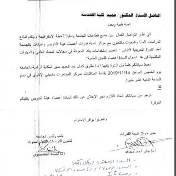 دعوة حضور ندوة بعنوان ( تطوير استراتيجية التعليم والتدريس فى التعليم الهندسى)