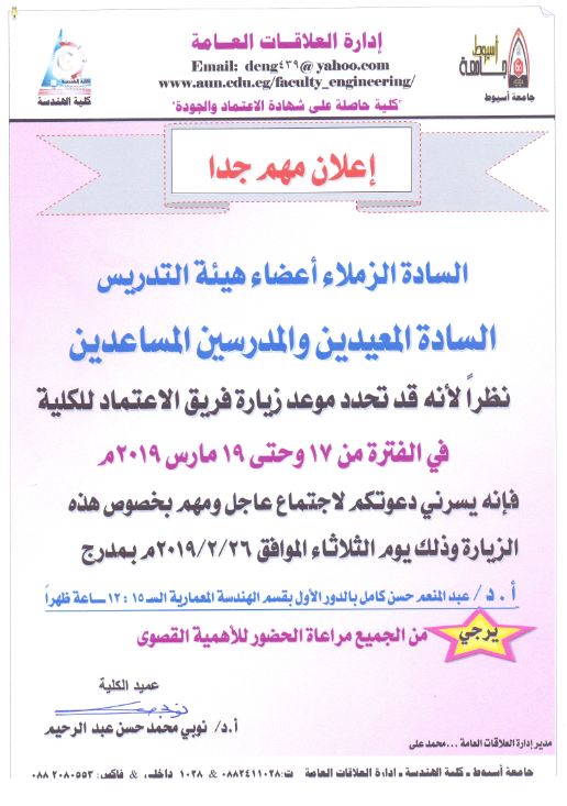 اجتماع هام جداً للسادة أعضاء هيئة التدريس والمدرسين المساعدين والمعيدين 25 فبراير 2019 اجتماع هام جداً للسادة أعضاء هيئة التدريس والمدرسين المساعدين والمعيدين