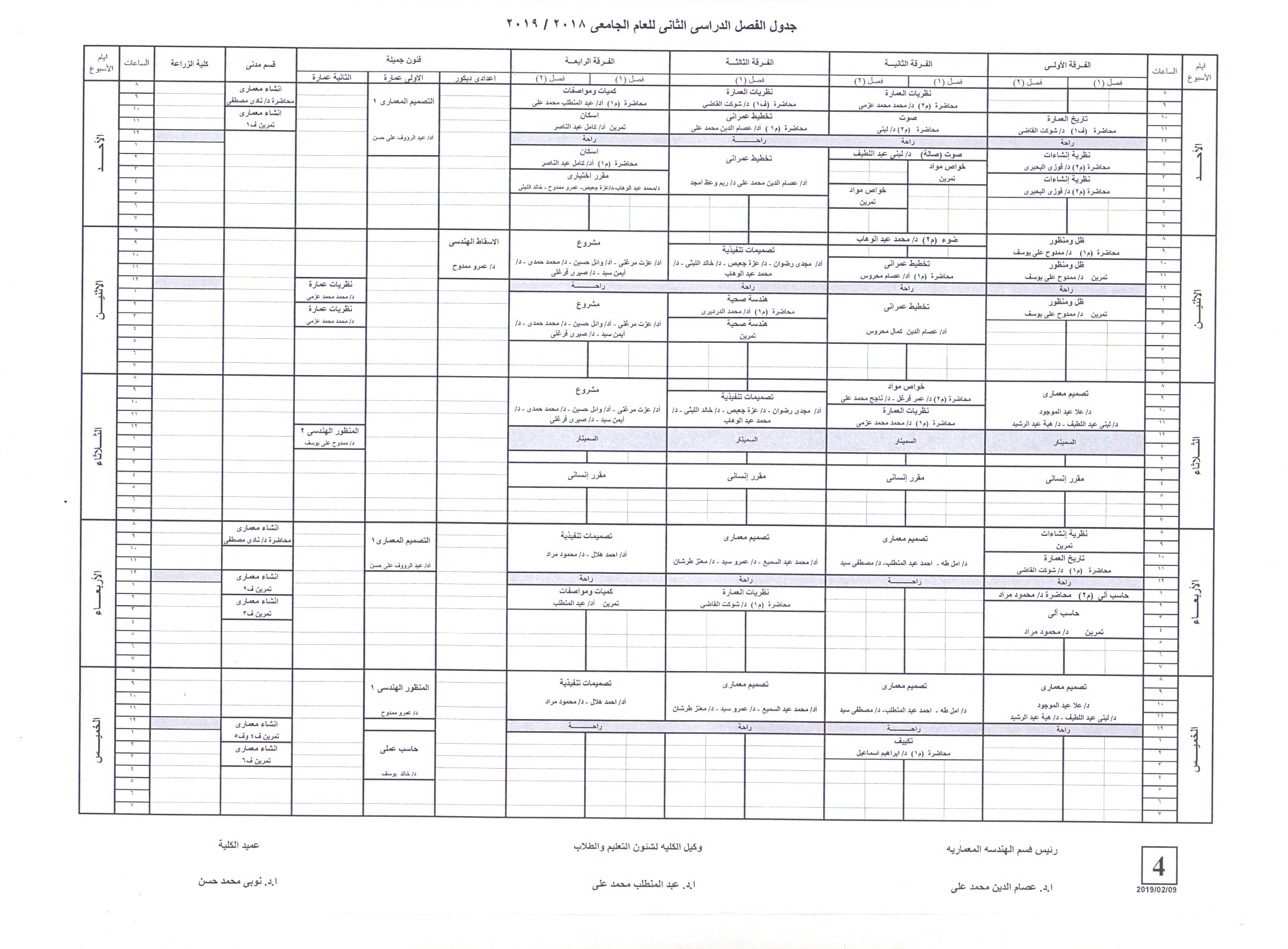 جدول قسم الهندسة المعمارية للترم الثانى للعام الدراسى2018/2019 18 فبراير 2019 جدول قسم الهندسة المعمارية للترم الثانى للعام الدراسى2018/2019