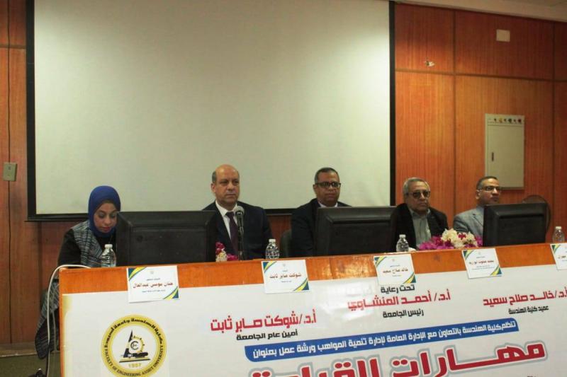تحت رعاية الاستاذ الدكتور أحمد المنشاوي رئيس جامعة أسيوط، والاستاذ شوكت صابر ثابت أمين عام الجامعة، نظّمت كلية الهندسة بالتعاون مع الادارة العامة لتنمية المواهب اليوم الاثنين الموافق 8 ديسمبر ورشة عمل بعنوان "مهارات القيادة"، وذلك ضمن خطتها لتنمية الكفاءات الإدارية وتطوير مهارات القيادات ودعم أداء العاملين بالجهاز الإداري بالكلية.