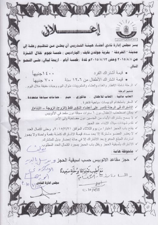 رحلة الى مدينة الغردقة للسادة أعضاء هيئة التدريس 14 يوليو 2015 رحلة الى مدينة الغردقة للسادة أعضاء هيئة التدريس